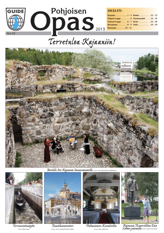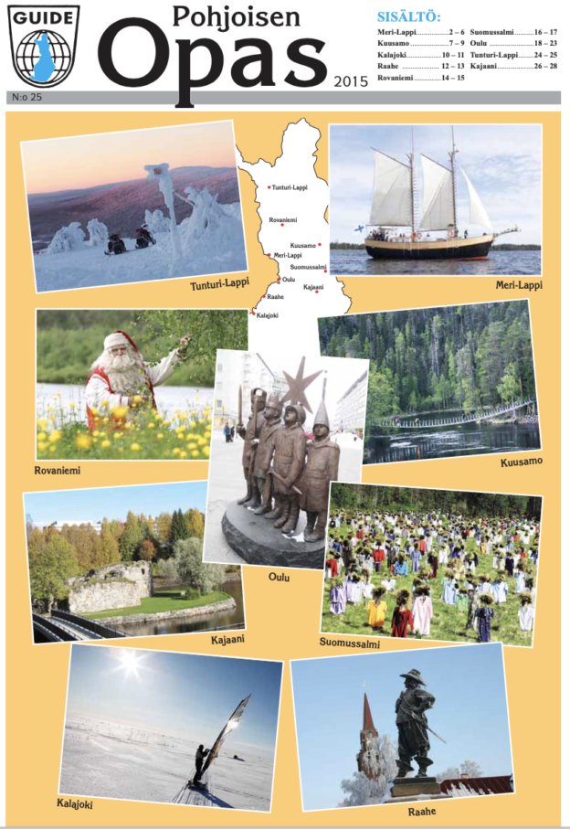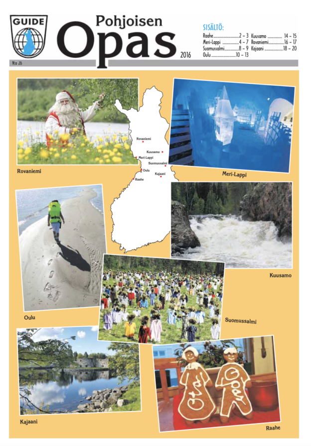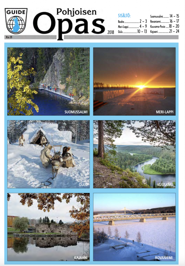 Lehteä jaetaan Oulussa useissa julkisissa paikoissa, ja se on luettavissa myös pdf-versiona näillä sivuilla. Lisäksi lehti on jaossa myös Kajaanissa, Kalajoella, Meri-Lapissa, Raahessa, Rovaniemellä ja Sotkamossa. Pohjoisen Opas ilmestyy kerran vuodessa keväisin, jotta se on saatavilla kesämatkailukauden alkaessa. Jos olet kiinnostunut mainostamaan yritystäsi lehdessämme, tutustu mediakorttiin tai ole yhteydessä yhdistykseemme.